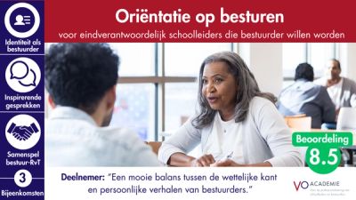 Dit oriëntatietraject is speciaal ontwikkeld voor eindverantwoordelijk schoolleiders die de serieuze ambitie hebben om bestuurder te worden.
