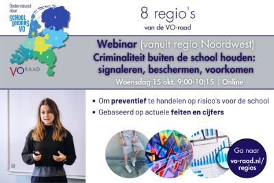 Dit webinar, georganiseerd door regio Noordwest maar open toegankelijk voor alle regio's, is bedoeld voor schoolleiders in het voortgezet onderwijs.