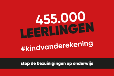 Onder de titel '455.000 leerlingen #kindvanderekening – stop de bezuinigingen in het onderwijs' maken de sectorpartners duidelijk welke ondersteuning voor deze leerlingen wegvalt, en welke ongewenste neveneffecten de bezuiniging nog meer gaat opleveren. Er ontstaat een gevaarlijk en zeer schadelijk domino-effect, dat de samenleving bovendien veel meer gaat kosten dan deze bezuiniging oplevert. Via praktijkvoorbeelden, blogs en video's maken we samen duidelijk wat er op het spel staat.