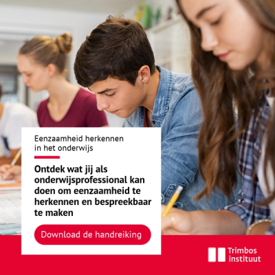 Bij de start van de Week tegen Eenzaamheid (25 september t/m 1 oktober) heeft het Trimbos-instituut de handreiking ‘Eenzaamheid: wat jij als onderwijsprofessional kunt doen’ gepubliceerd. De handreiking bevat tips en handvatten, alsook verwijzingen naar bestaand ondersteuningsaanbod, rond de vraag hoe je eenzaamheid onder leerlingen kunt signaleren en hoe je hen kunt helpen om het gevoel van eenzaamheid te verminderen.