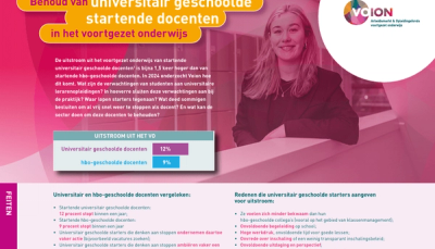 De uitstroom uit het voortgezet onderwijs van startende universitair geschoolde docenten is bijna 1,5 keer hoger dan van startende hbo-geschoolde docenten, dat blijkt uit onderzoek van Voion.