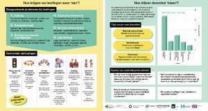 Uit de gesprekken met enkele honderden onderwijsprofessionals zijn veel punten naar voren gekomen. Niet alleen de vraag ‘hoe krijgen we leerlingen weer ‘aan’?’, maar ook ‘hoe blijf je als docent staan?’ kwam veelvuldig aan de orde. De gespreksverslagen zijn geanalyseerd en de resultaten lees je terug in deze infographic.